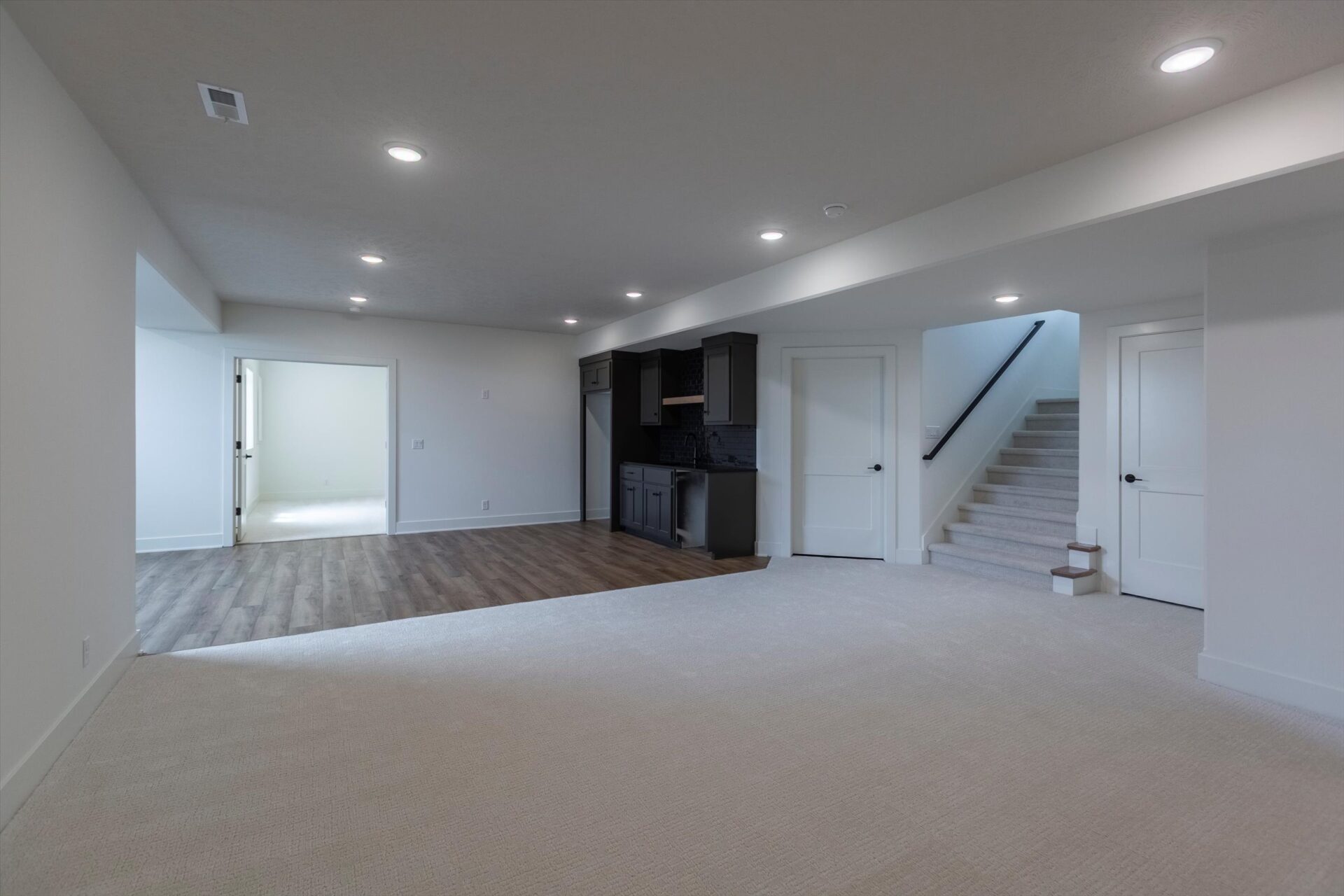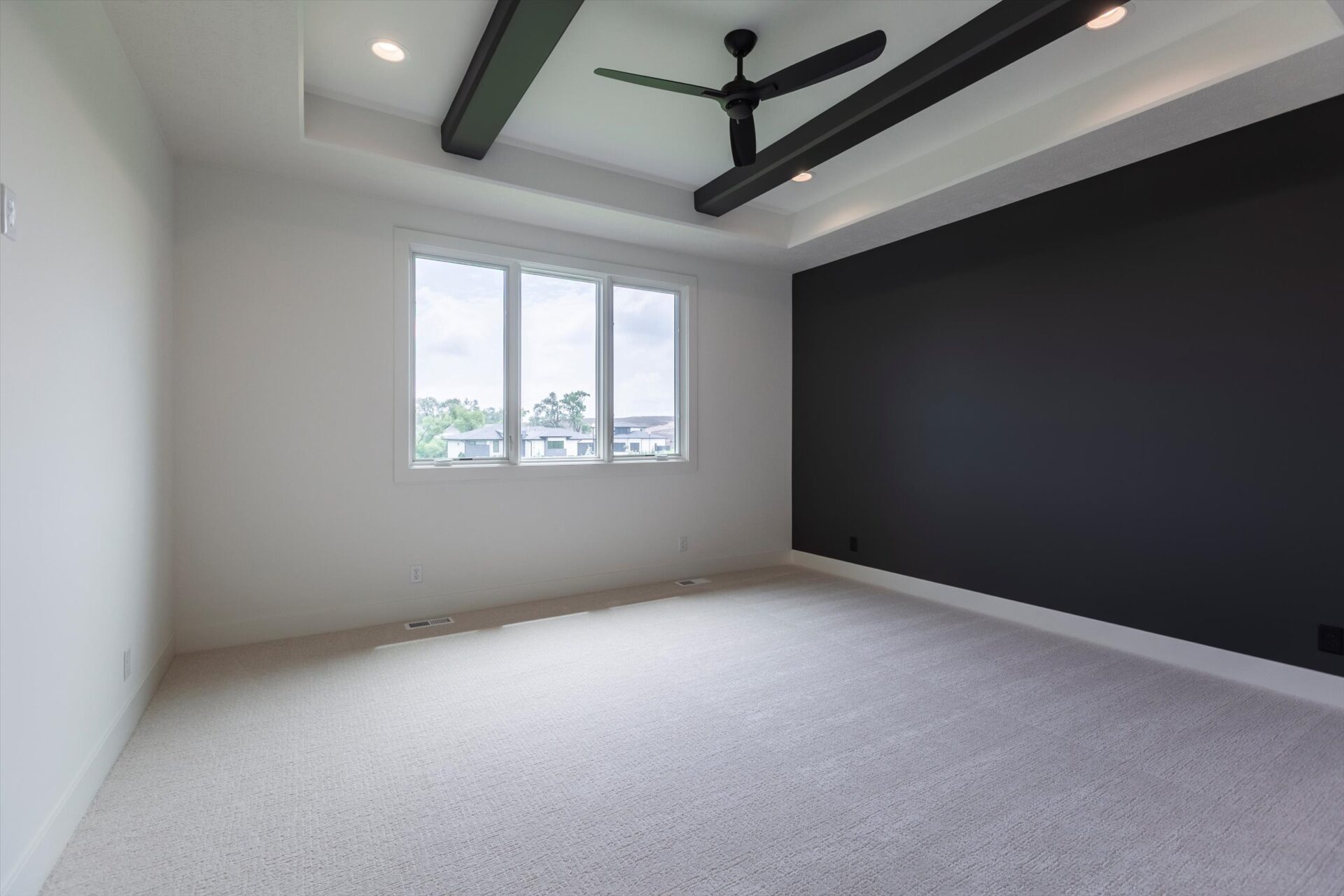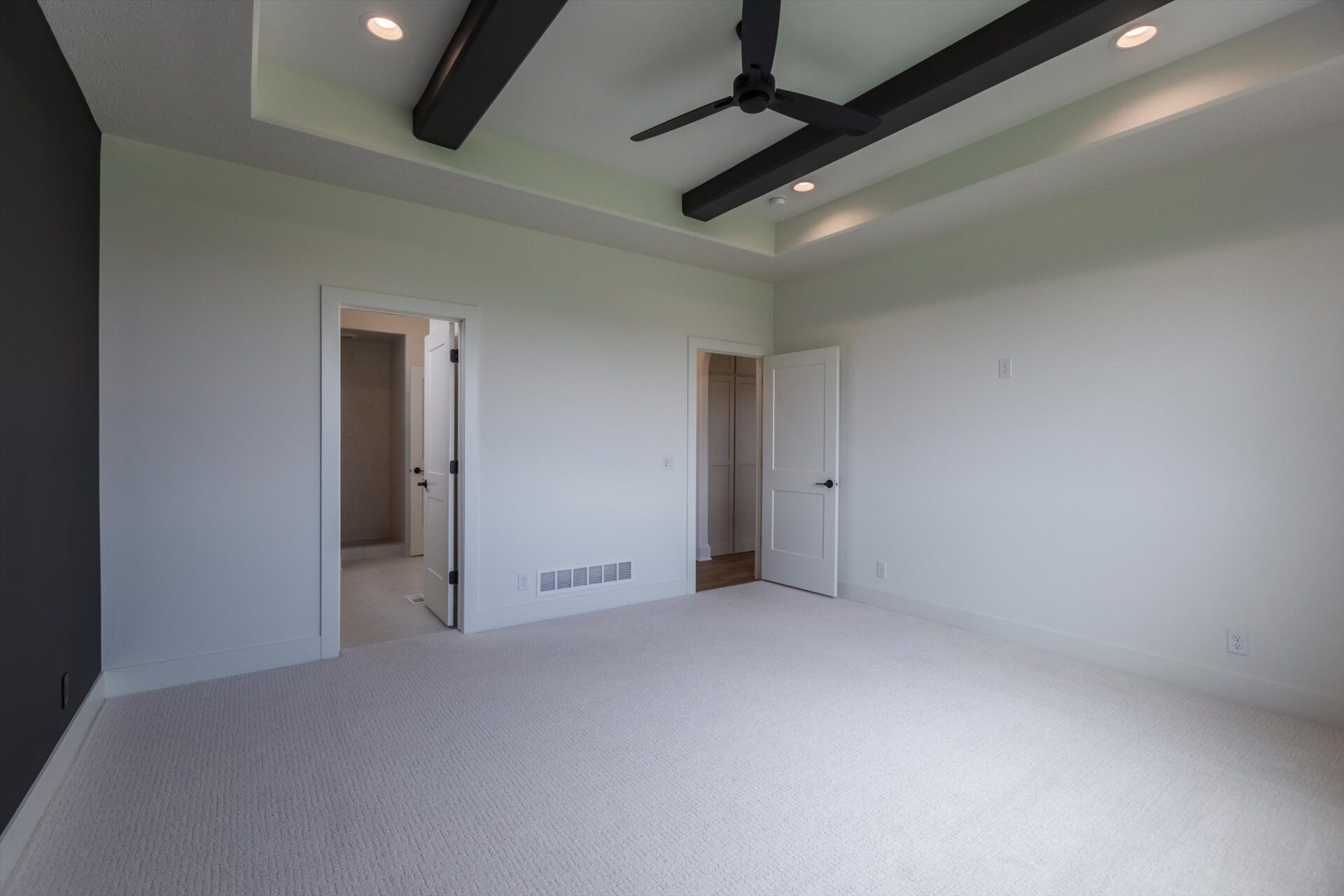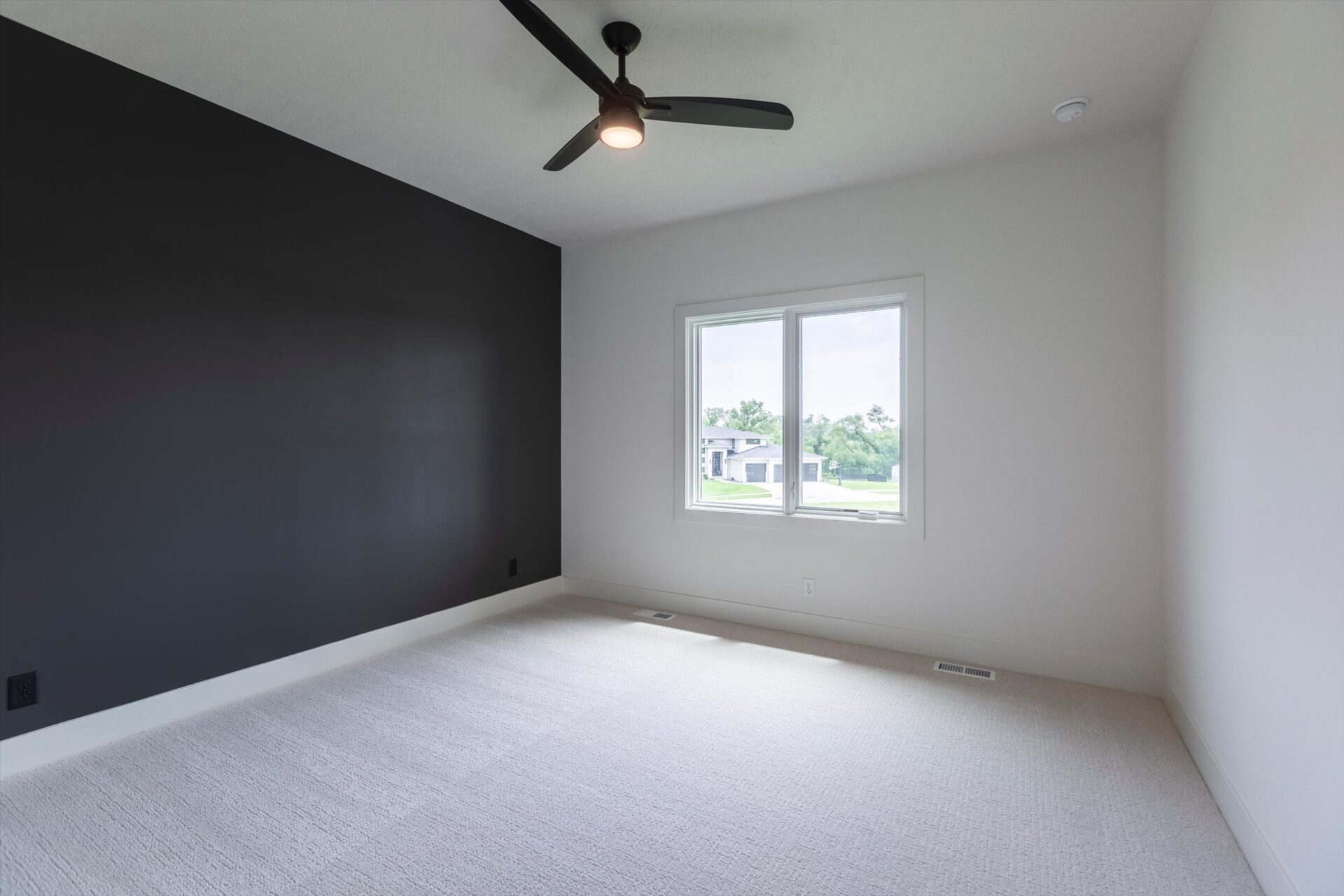 Custom built Split-Three Rambler in Gretna’s Hidden Hollow Estates. Built on a large west facing flat lot. Expanded plan includes a 3 bedroom basement finish and expanded garage with three door front. Exterior design is tailored to customer’s desires for a modern prairie style with steeper roof line and larger garage.