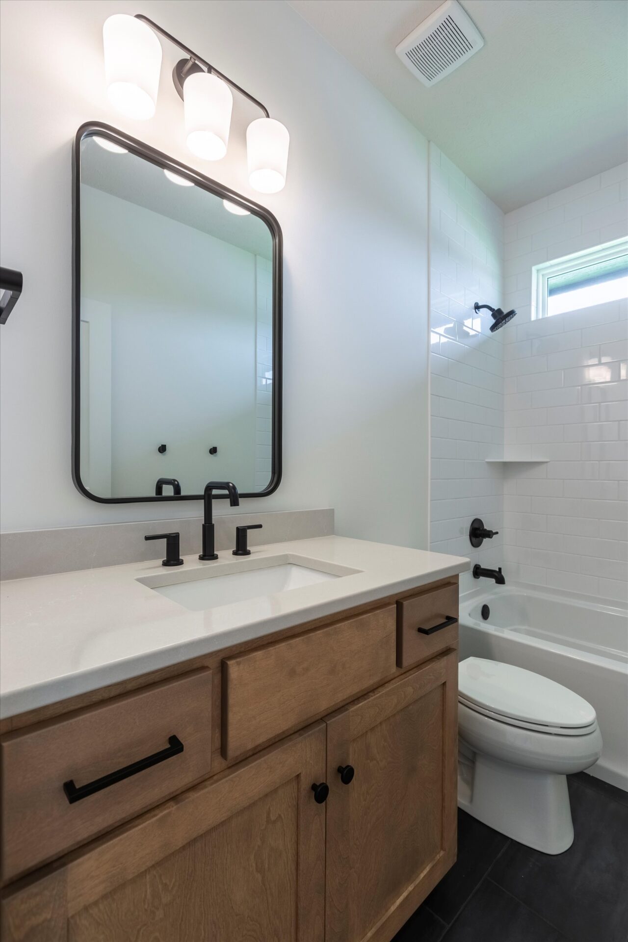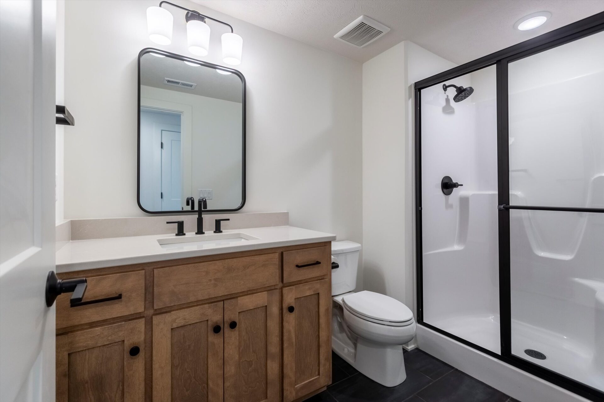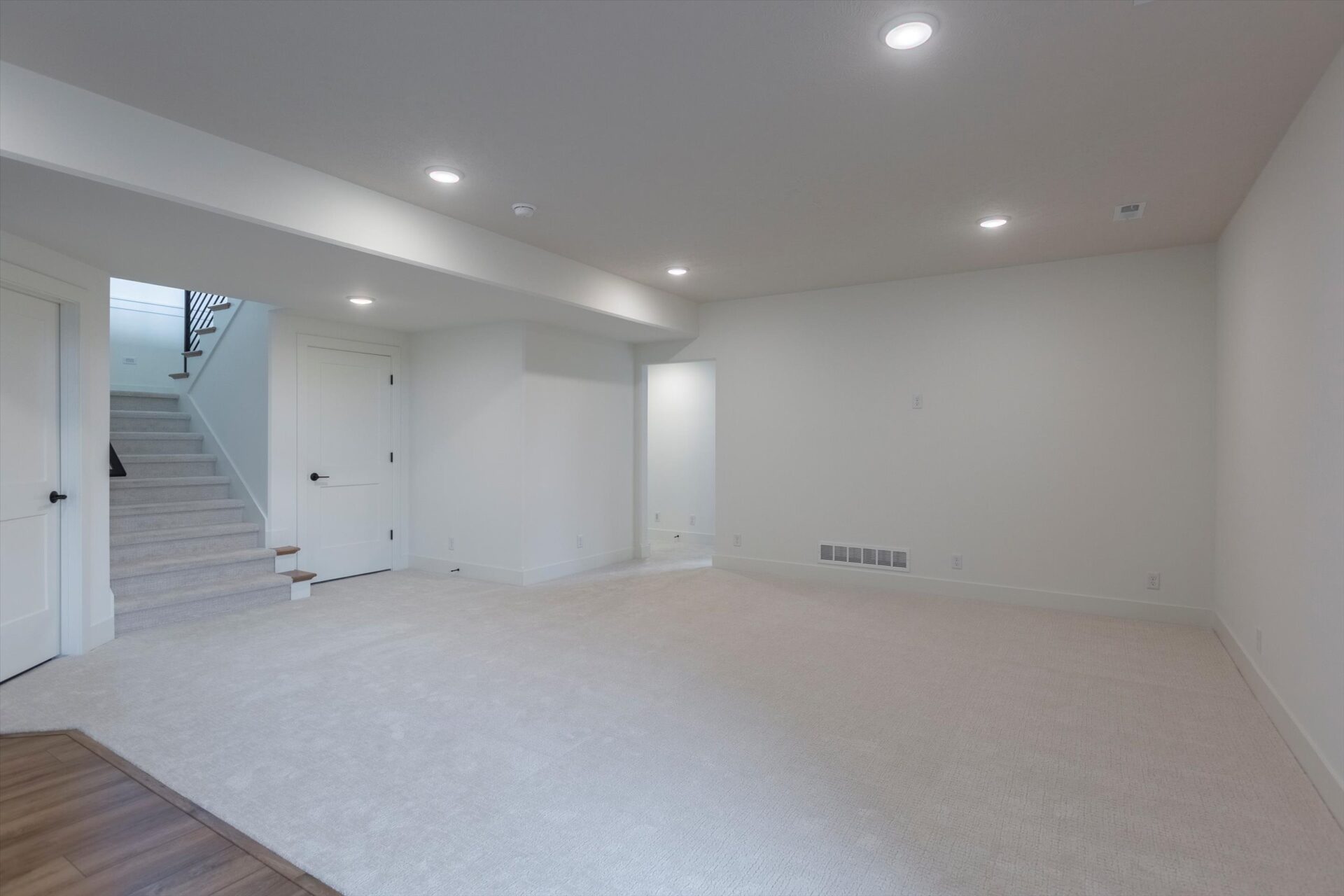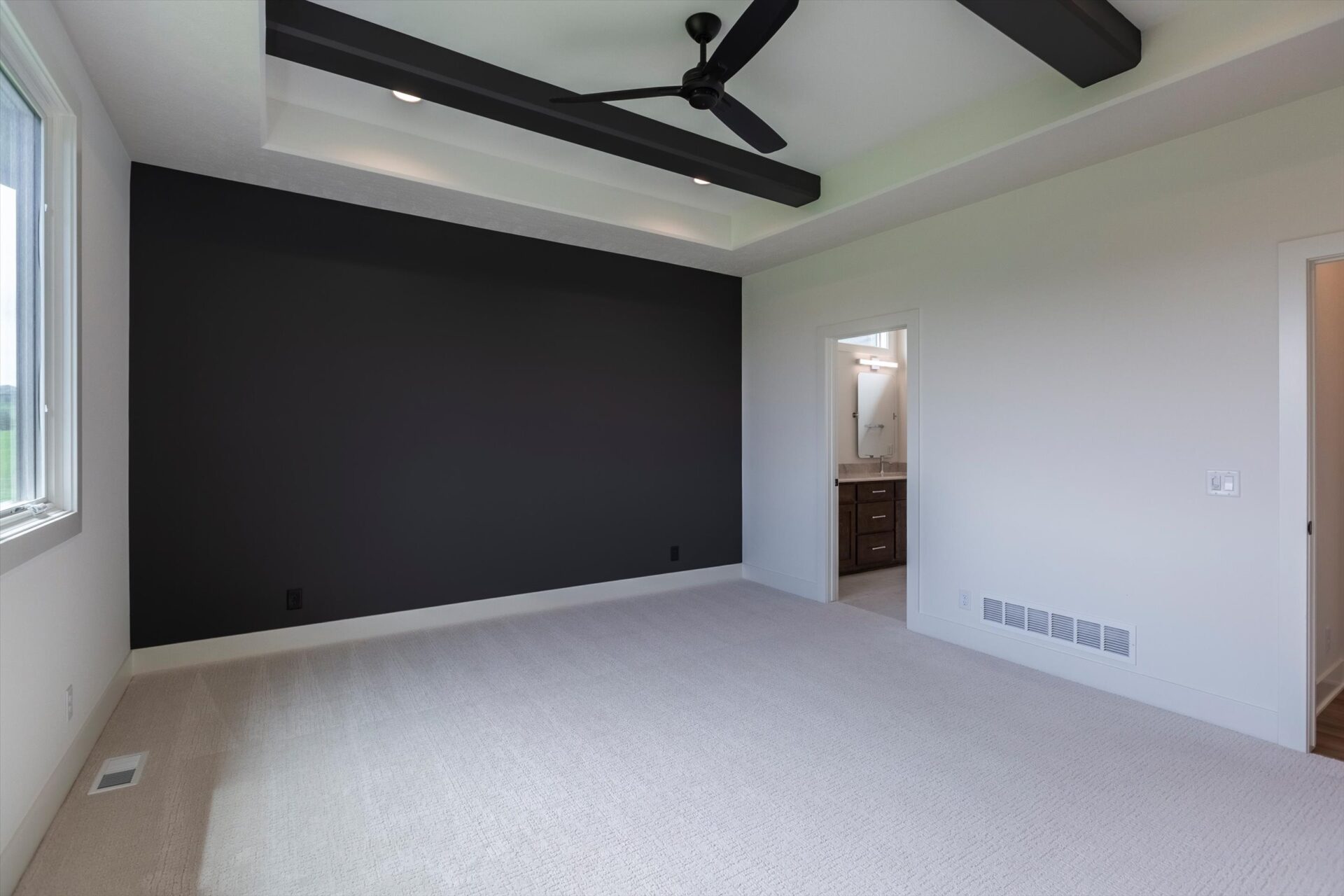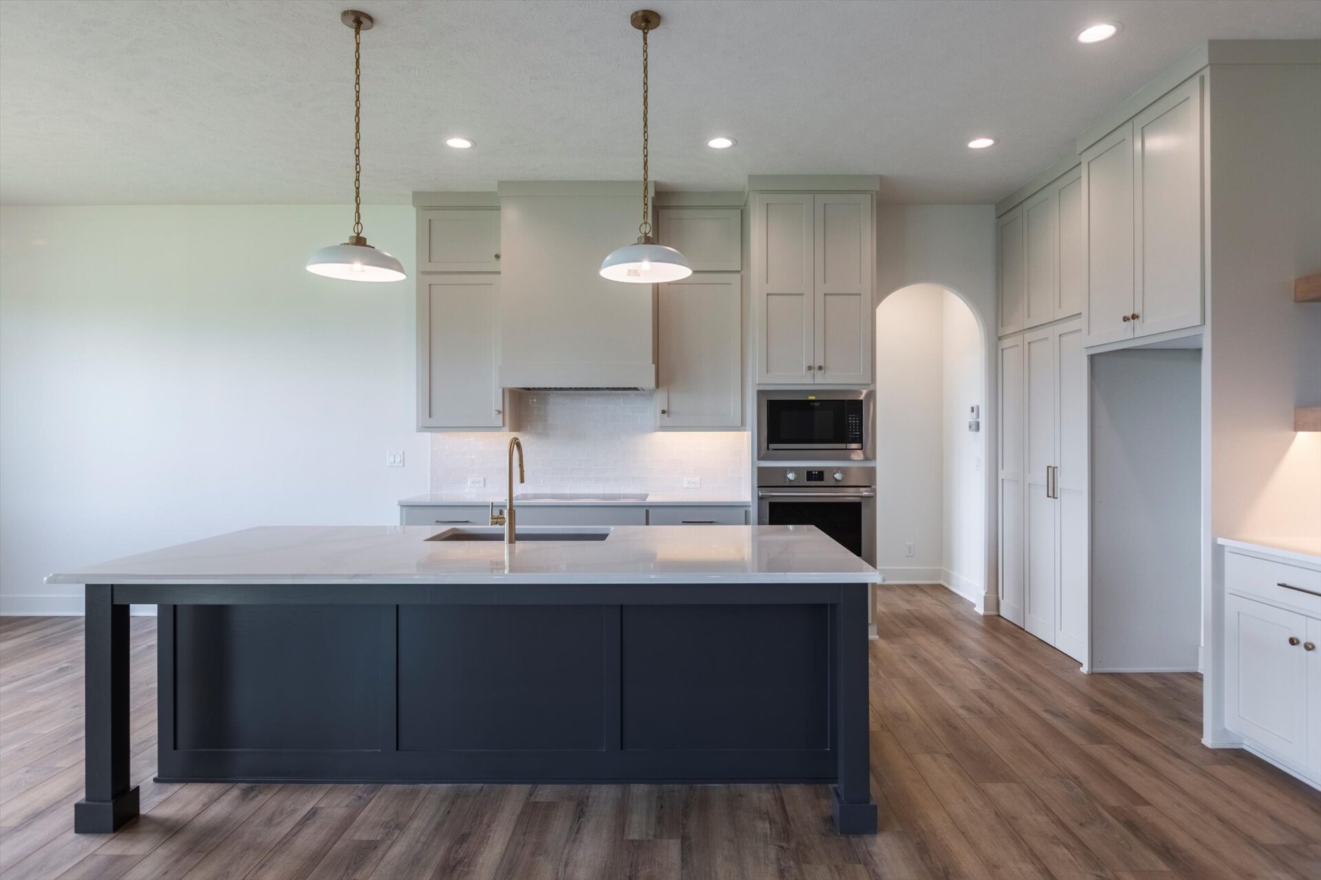 Custom built Split-Three Rambler in Gretna’s Hidden Hollow Estates. Built on a large west facing flat lot. Expanded plan includes a 3 bedroom basement finish and expanded garage with three door front. Exterior design is tailored to customer’s desires for a modern prairie style with steeper roof line and larger garage.